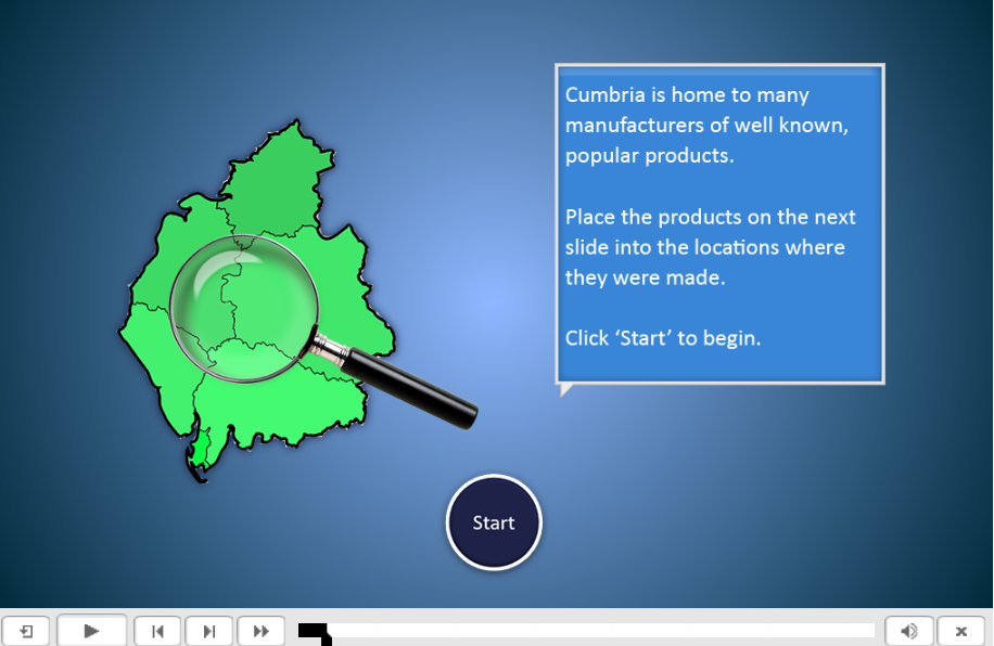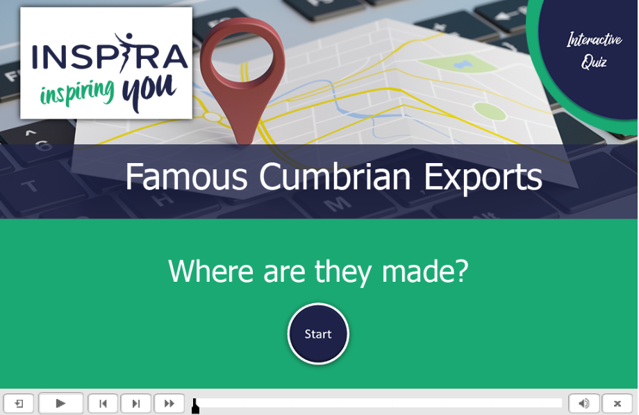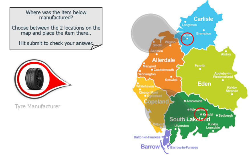 With Covid restrictions preventing Inspira from teaching face-to-face in schools, Scott created an online quiz for the company to use remotely. This took a ‘drag and drop’ format whereby students matched up various items with their manufacturing locations on a map of Cumbria.